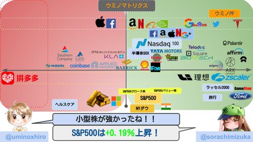 米国株市場の状況の振り返りと私見をまとめていきたいと思います。小型株が非常に強かった日でした。