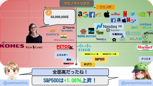 米国株市場の状況の振り返りと私見をまとめていきたいと思います。仮想通貨市場の反発も有りグロース株、環境系などが上がっています。